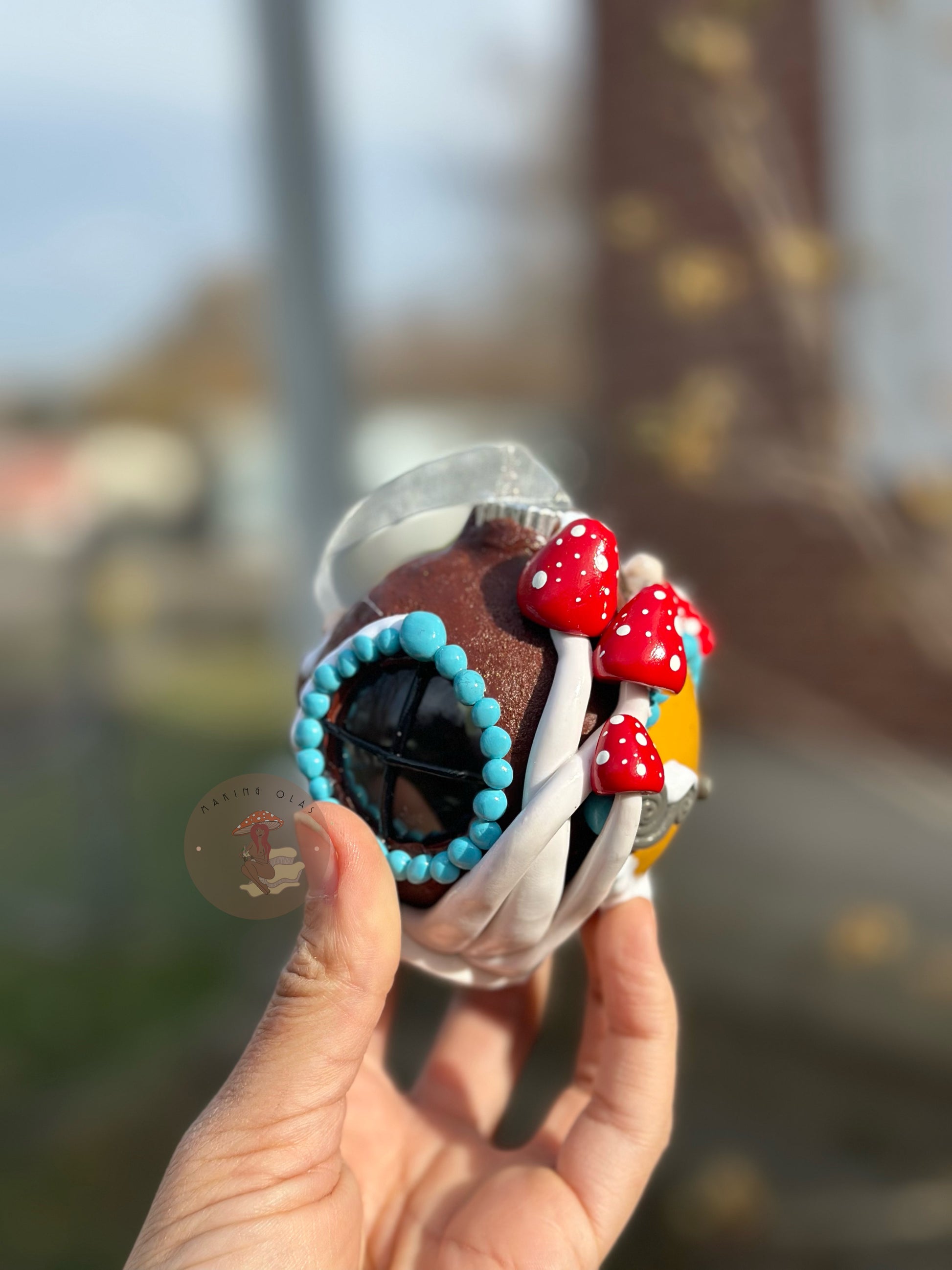 Fairy house ornaments will make your Christmas extra special. Clay is handsculpted over the glass ornament. These are made to last for years and years. Meant to become a family heirloom.