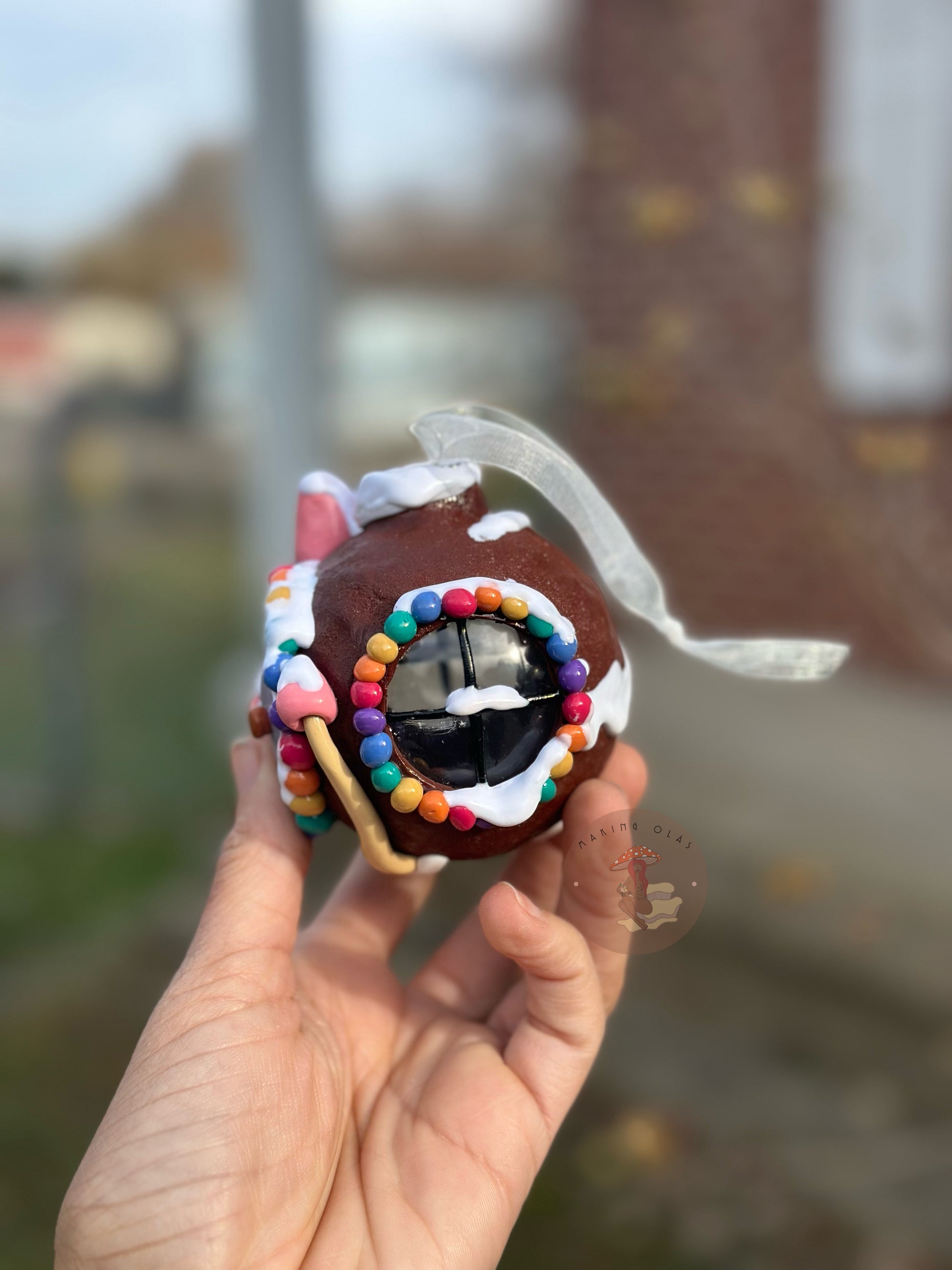 Fairy house ornaments will make your Christmas extra special. Clay is handsculpted over the glass ornament. These are made to last for years and years. Meant to become a family heirloom.