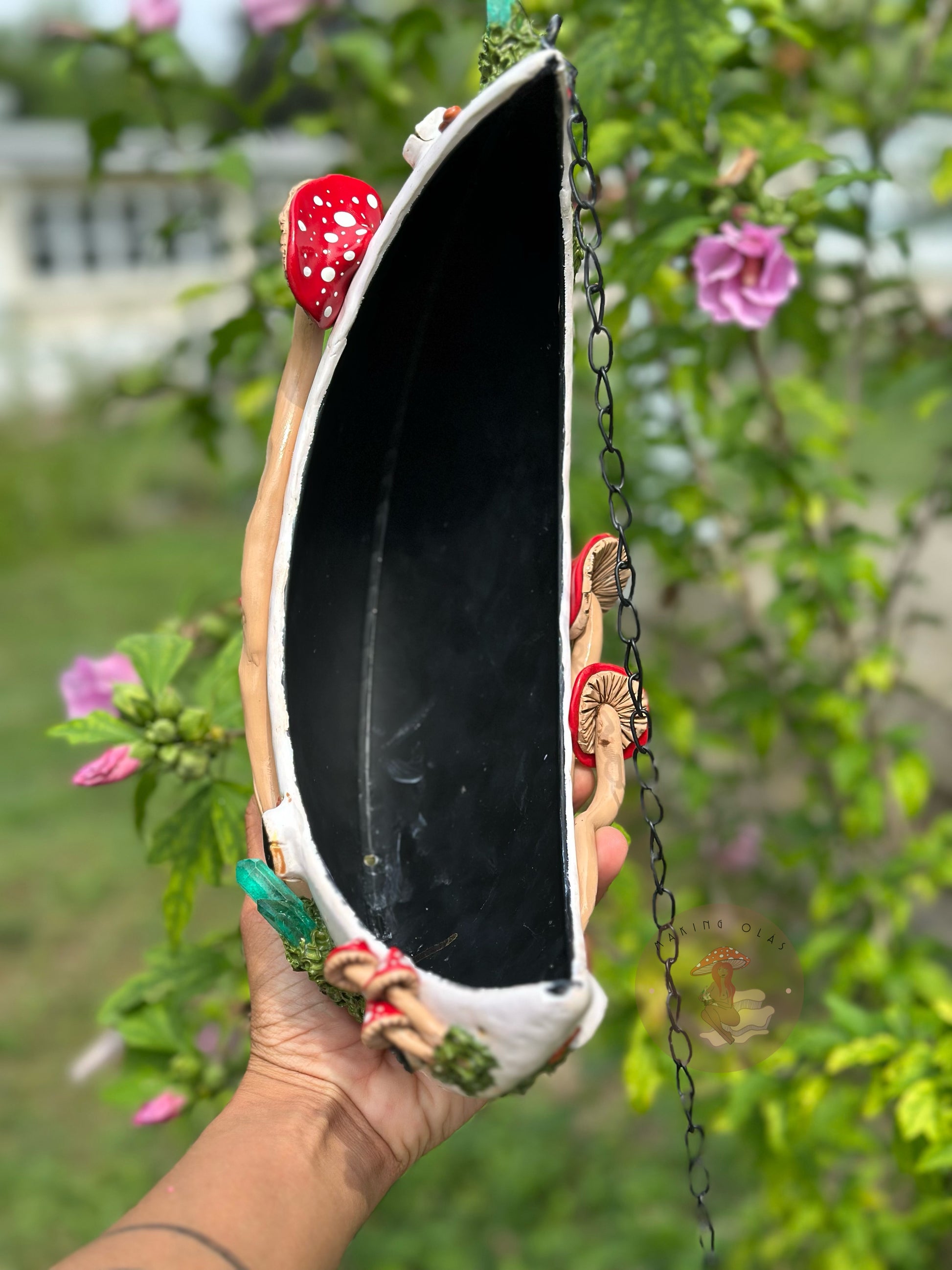 PREORDER| Hanging Moon Planter with Red Mushrooms + Quartz