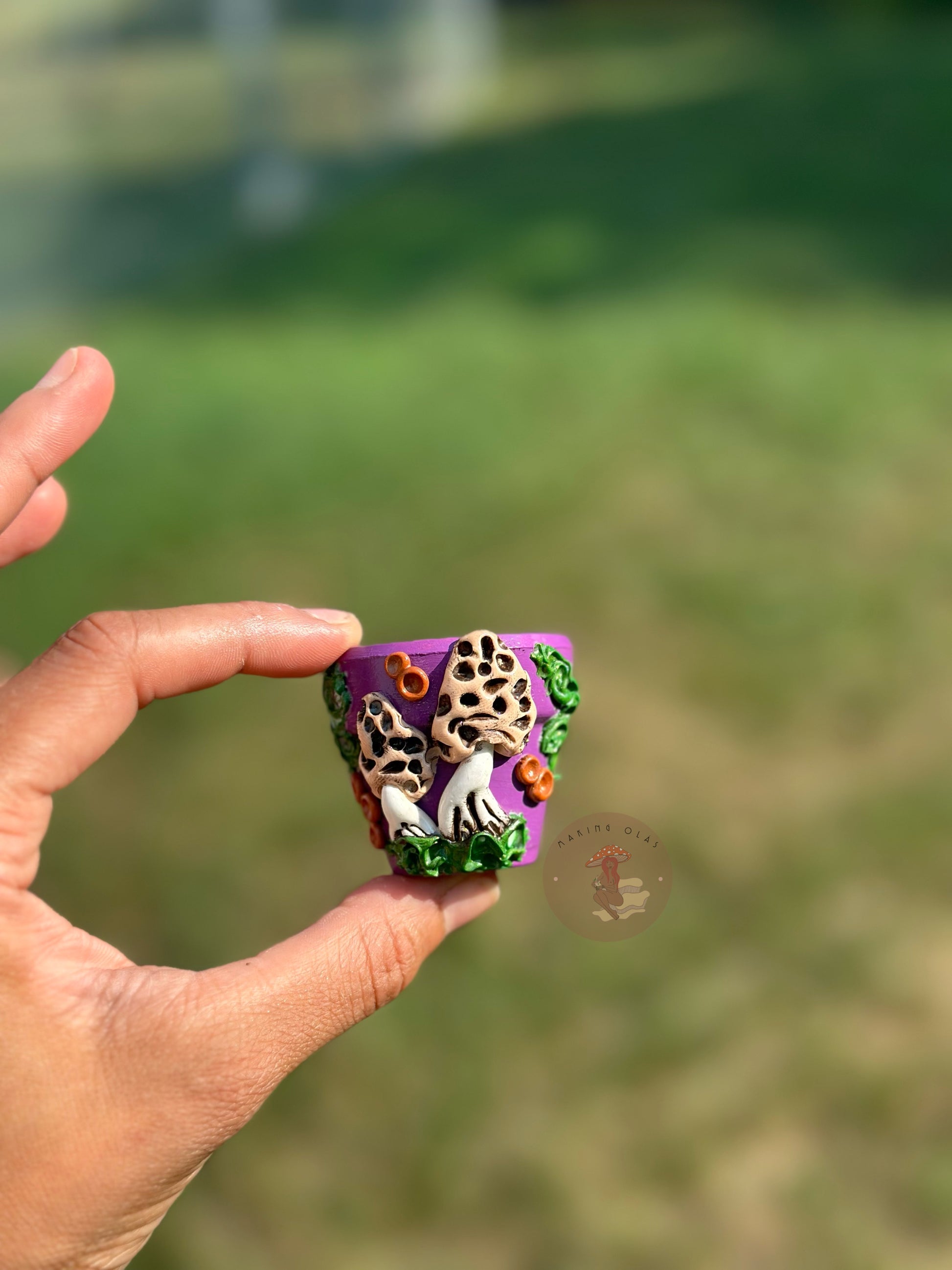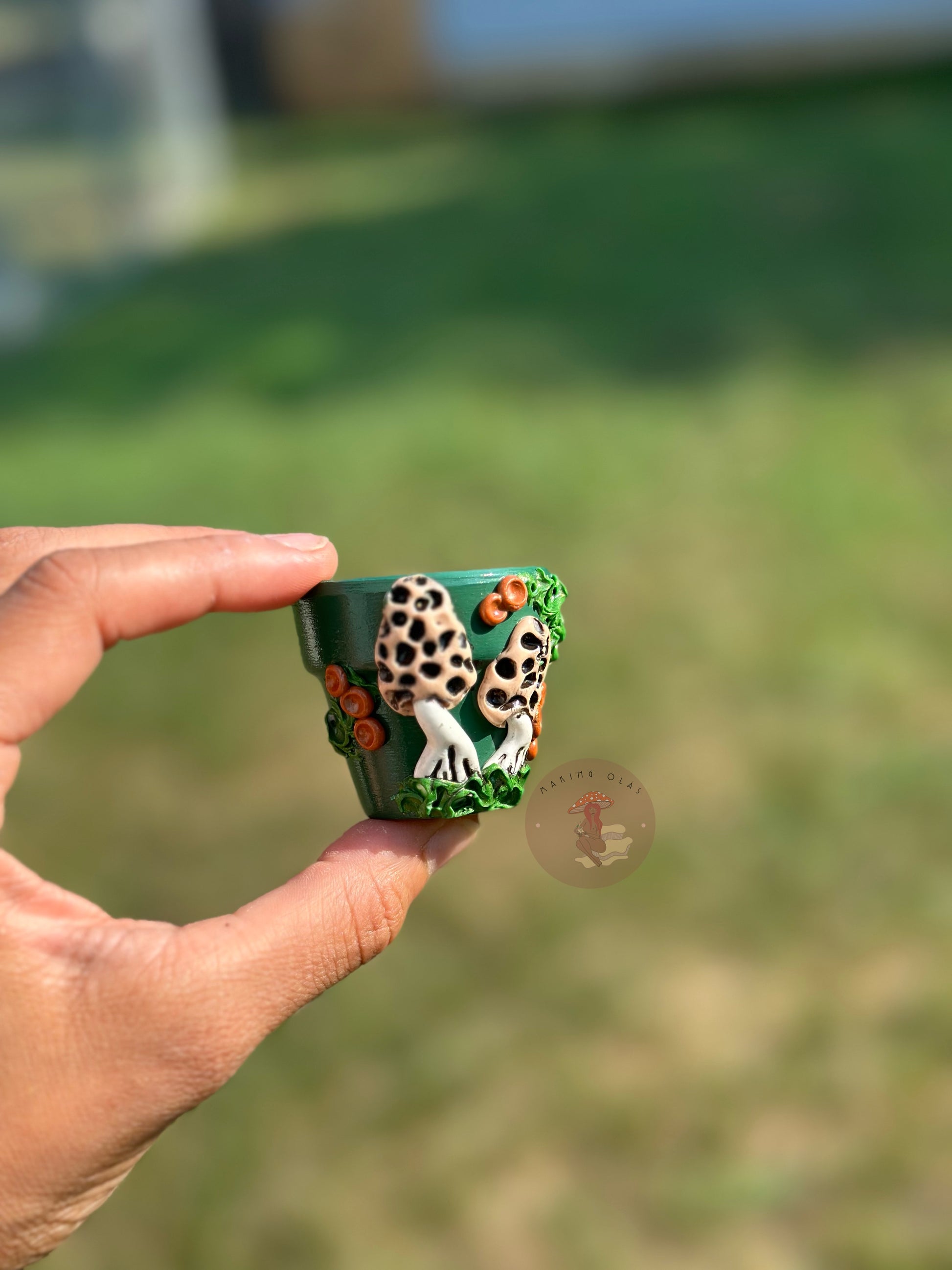 Pots are individually hand-sculpted with clay onto terra cotta, ensuring each one is unique. While some are kept in stock, many are made to order.